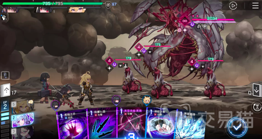 值得一提的是其独有的“折磨”机制:一旦激活该状态,玩家必须消耗特定数量的负面卡牌才能恢复正常行动。因此,在使用相关角色时需合理规划出牌顺序与频率,避免陷入难以脱身的困境。