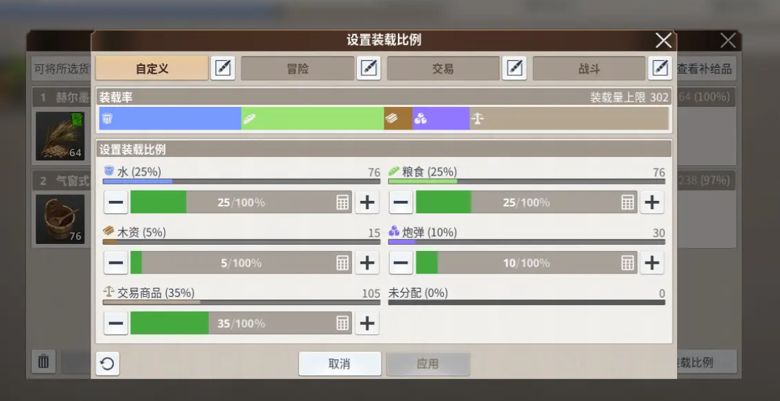 每次停靠港口时,都应充分利用城市设施完成全面补给。在“旅馆”中招募新船员补充人力短缺;前往“造船厂”修复因战斗受损的船体结构;在“出港所”补充淡水、粮食与炸弹等航行必需品。此外,可通过比例设置界面自定义各类物资装载配比,灵活调整货物结构,以适应不同航程需求,提升整体运营效率。