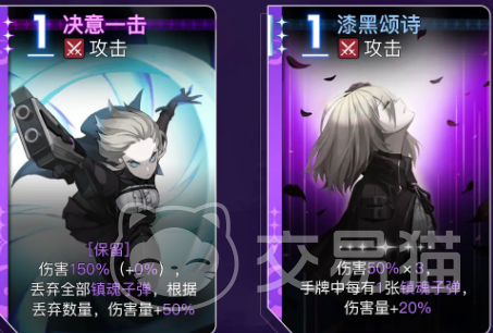 第二张卡牌则依据当前手牌中子弹类卡牌的数量进行伤害叠加,每拥有一张即可提升50%伤害输出。第三张卡具备180%基础伤害,并通过弃掉子弹卡来强化威力,每丢弃一张可增加100%伤害,爆发潜力极高。最后一张卡具备主动弃牌机制,能够通过舍弃卡牌来转化为子弹资源。