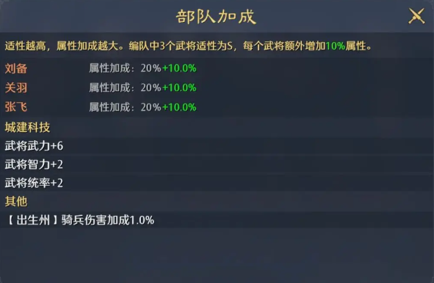 张飞作为三号位输出点,推荐配置“鼓破千雷”与重创类技能,以最大化其爆发潜力。由于该位置技能格有限,需优先选择强袭型战法,确保在短时间内打出高额伤害。此外,张飞自身拥有一定的技能发动率加成,在搭配枪兵兵种时更具优势。整个阵容建议统一使用枪兵,尤其是3S级别的枪兵,可获得高达30%的额外属性加成,显著提升战斗力。