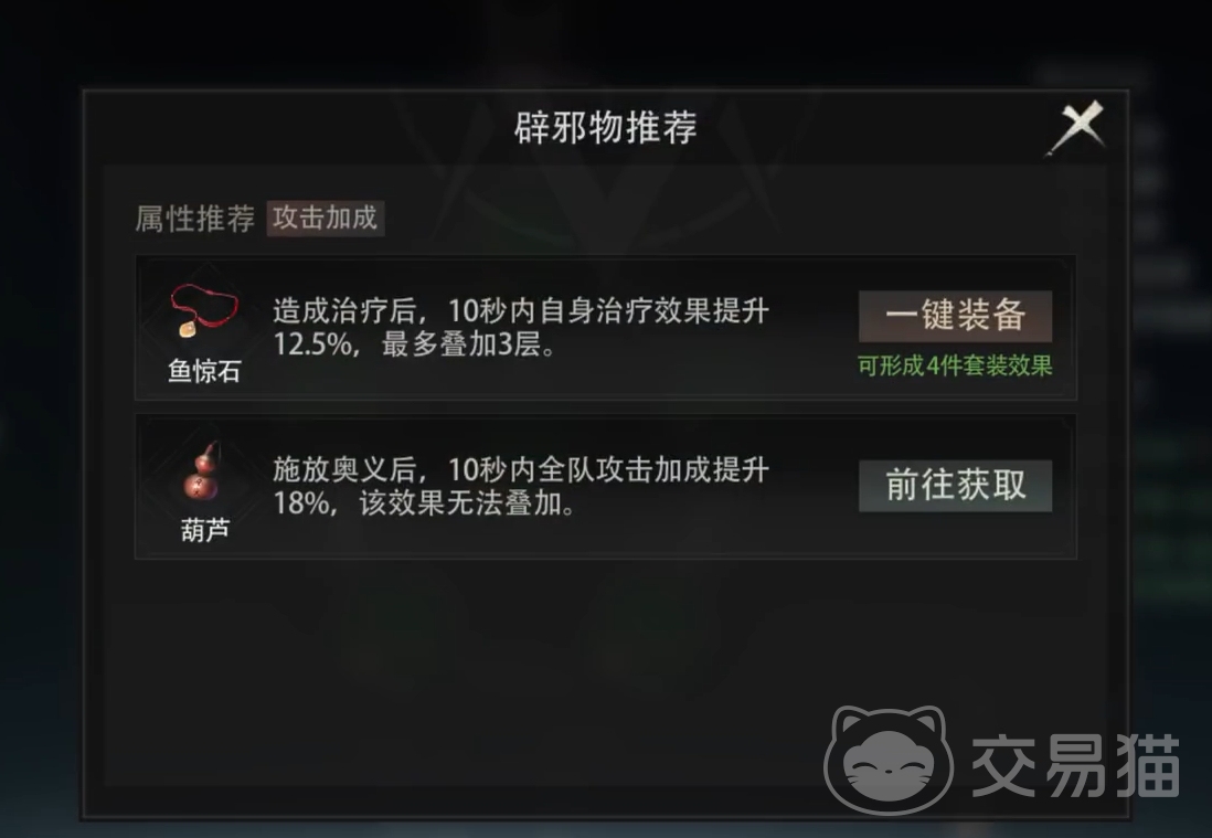 每种辟邪物拥有独特的属性加成,单独装备时仅生效基础属性;当装配两件相同系列时,将触发两件套特效;集齐四件则可激活更强力的四件套效果。即使混搭不同类型的辟邪物,只要数量满足条件即可叠加对应套装增益。由于每位角色最多可装备六件辟邪物,推荐采用“4+2”或“2+2+2”的组合策略,最大化利用套装属性。除非暂无成套配置,否则应避免使用无套装加成的散件搭配。
