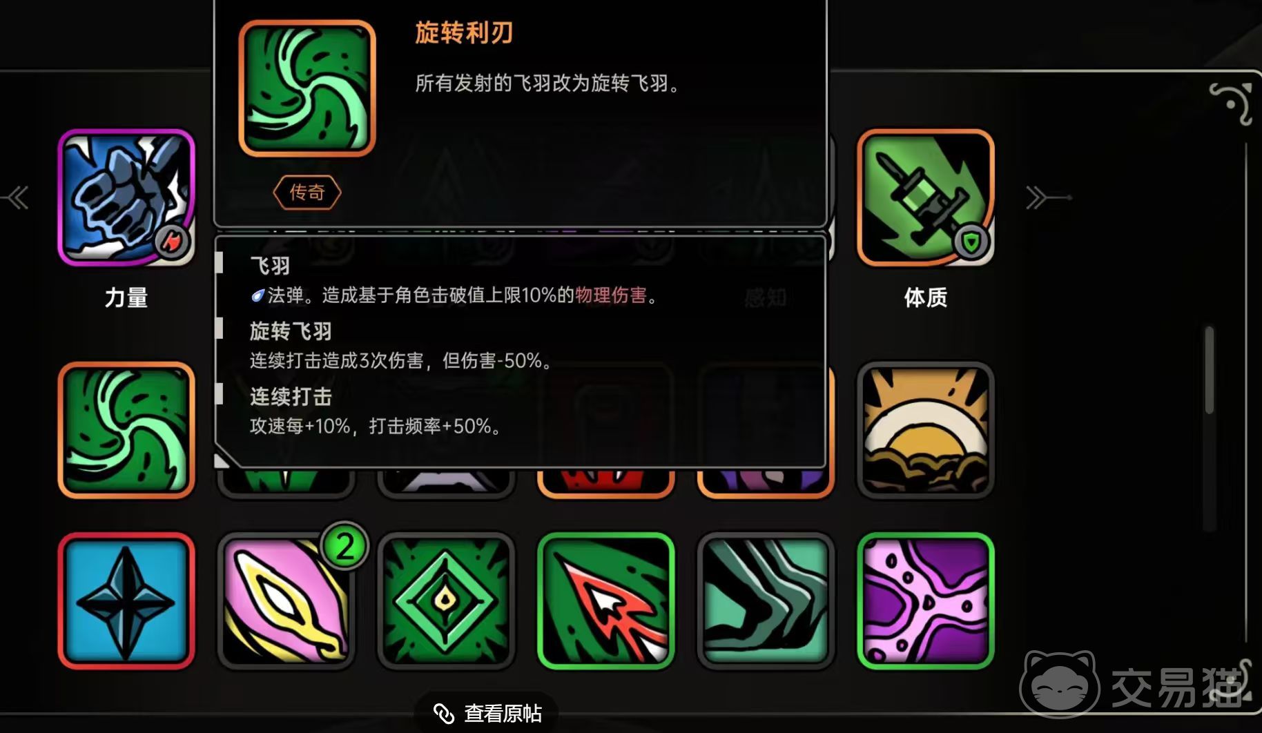 从开局阶段起,技能与路线的选择就决定了流派的成长速度。建议优先获取“无人机”或“紧急指令”作为首个主动技,因其获取门槛低、触发稳定,是启动飞羽循环的基础。随后应前往感知房间拾取“飞羽指令”,再进入敏捷房间获取“同步指令”,以此快速达到可观的飞羽覆盖率。中期搭配方面,“绿牙”与“蓝牙”至关重要:“绿牙”提供生命值加成并增强资源获取效率,“蓝牙”则缩短技能冷却时间,使无人机更频繁地部署战场。
