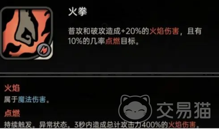 雷火刀流的关键在于对“燃烧”机制的高效运用,而火拳则是触发该效果的主要武器。在熟练的操作下,火拳能够频繁激活燃烧状态,为角色提供稳定的持续伤害。若想最大化输出效率,护符的选取尤为关键。其中,热超载火拳是构建该流派的基础配置,可稳定触发点燃效果,延长敌人的受创时间。配合热超载护符使用,每次燃烧都能附加额外伤害,显著提升整体输出水平。