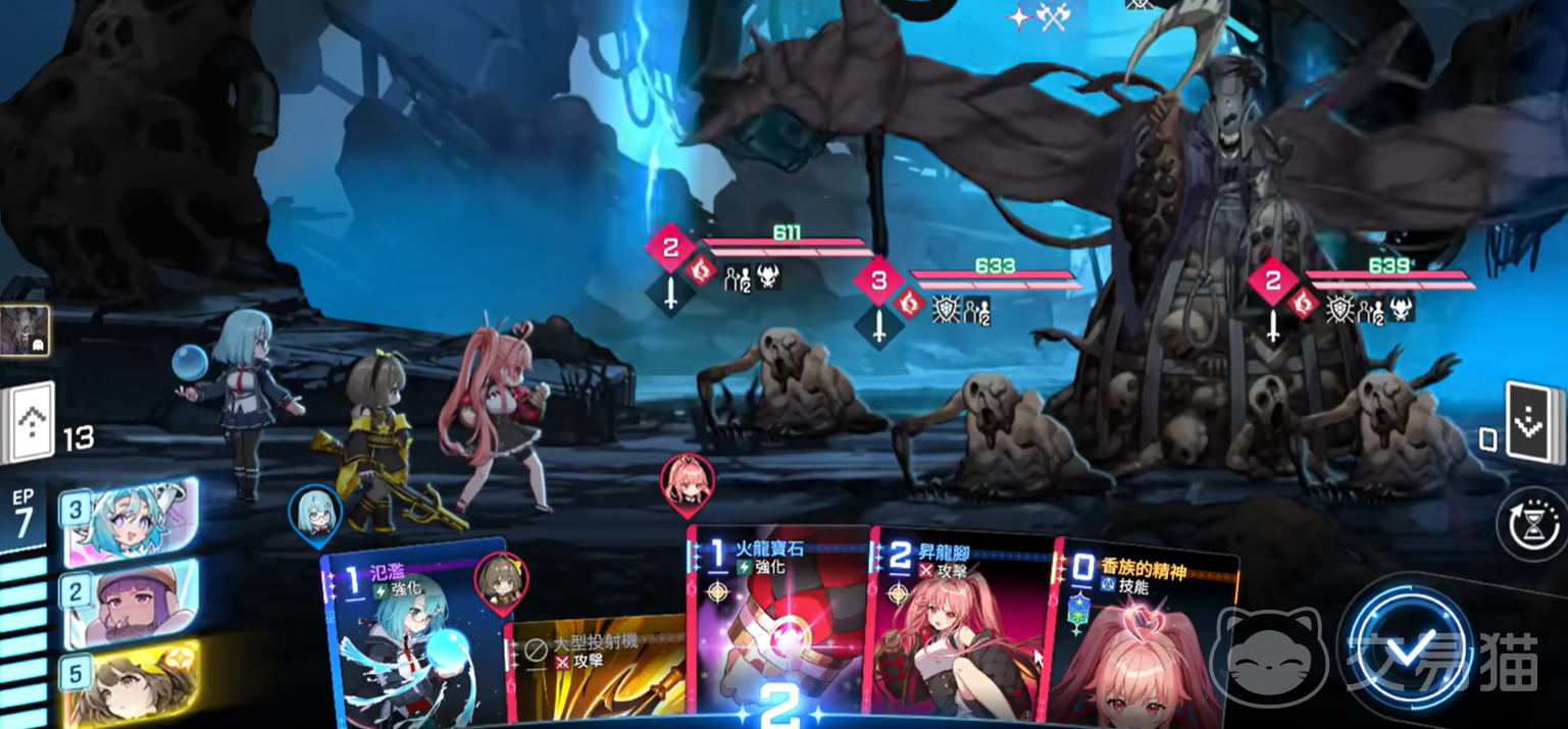 小怪清除完毕后,Boss进入本体作战阶段。此时蓝壶攻击力提升40%,并激活标志性技能“三连爪击”——该技能具有明显前摇动作,命中后可穿透当前护甲值,并对全体角色造成高额固定倍率伤害。应对关键在于预判释放:需在蓝壶抬手瞬间同步启用群体护盾或群体治疗卡,确保所有单位在技能落地前获得有效防护。建议将治疗/护盾类卡牌始终保留在待命栏位,避免因切卡延迟导致防御空窗。