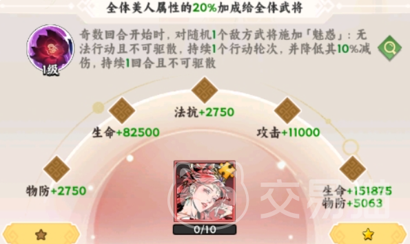 当玩家成功招募并激活特定美人后,除了获得基础属性加成外,还将解锁其专属技能。例如貂蝉的“魅惑”技能,可使敌方攻击力最高的单位陷入控制状态,迫使其在1回合内倒戈攻击同伴,同时降低该目标10%的减伤能力,且此效果不可被驱散,具有极强的干扰性。