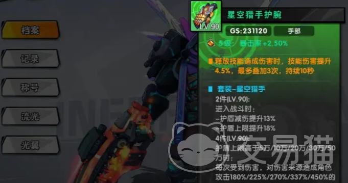 装备搭配强调泛用性与数值确定性:推荐采用星空猎手四件套+急冻两件套的组合方案,该配置在PVE与PVP场景中均具备稳定表现。具体增益为:两件星空猎手提供13%护盾减伤与18%护盾上限加成;四件齐备时,护盾上限可突破50万,并附加每次承伤后返还45%攻击力的反制效果。此套装无需复杂词条堆叠,成型门槛低,适配绝大多数主流构筑。