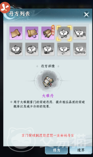 首要方法是使用突破丹。该道具为提升成功率的核心基础,在宗门界面的“炼丹阁”中可自主炼制。炼制过程需消耗固定时间及日常积攒的资源,建议玩家提前规划炼丹周期,确保突破前储备充足。进入突破界面后,系统会显示可填充的丹药槽位,所填入的突破丹数量将线性叠加成功率,满槽即可达成100%。