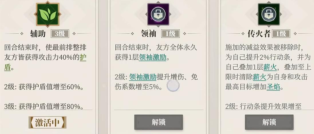 突破技【焚天灭地】赋予团队强力生存保障:每当任意己方单位攻击带有神灼状态的目标时,攻击者将获得相当于本次伤害一定比例的护盾值。升至5火后,祝融登场即对敌方全体施加1层神灼,极大强化开局压制力与节奏控制能力。综合来看,祝融在PVE场景中表现尤为突出——既可与王异组成高直伤爆发组合,亦能协同貂蝉构建稳定护盾+增益循环体系,是当前版本中功能性与泛用性兼备的核心辅助武将。