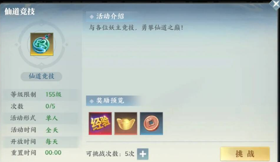 “仙道竞技”为日常可参与的积分对战玩法,角色等级达到155级并通关指定主线任务后自动解锁。系统依据玩家当前积分,智能匹配4名分数相近的对手供自由选择。若当前推荐阵容强度超出预期,可消耗次数刷新对手列表,确保挑战体验更贴合实际战力水平。