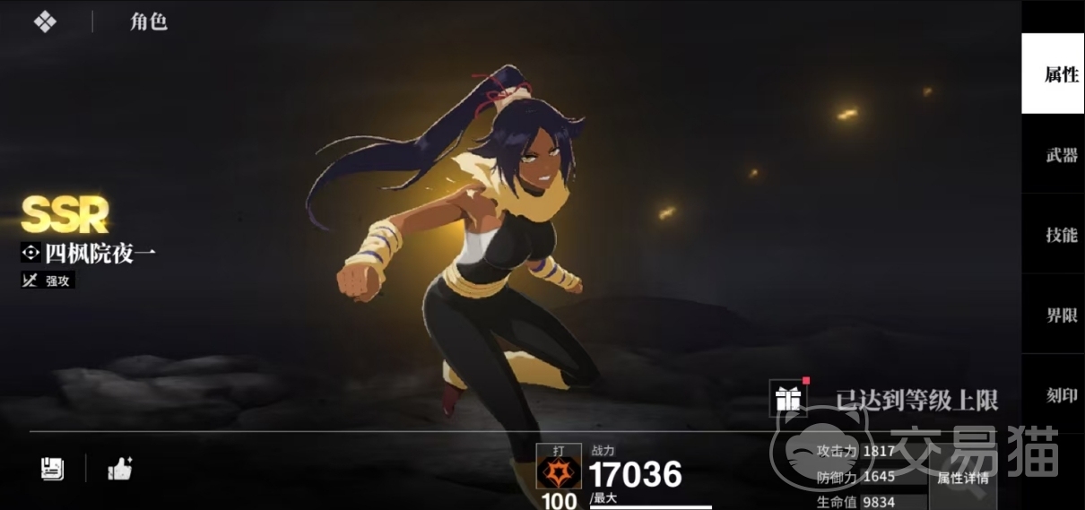 四枫院夜一补足阵容机动性与前置压制能力。其速度成长属性处于全角色梯队前列,可优先行动并施加沉默与减速效果,有效打断敌方高速单位的先手链。被动“瞬步追击”提供暴击率加成,并在暴击命中后触发追加攻击,持续叠加破甲效果,为朽木白哉等高倍率输出角色创造更高收益环境。
