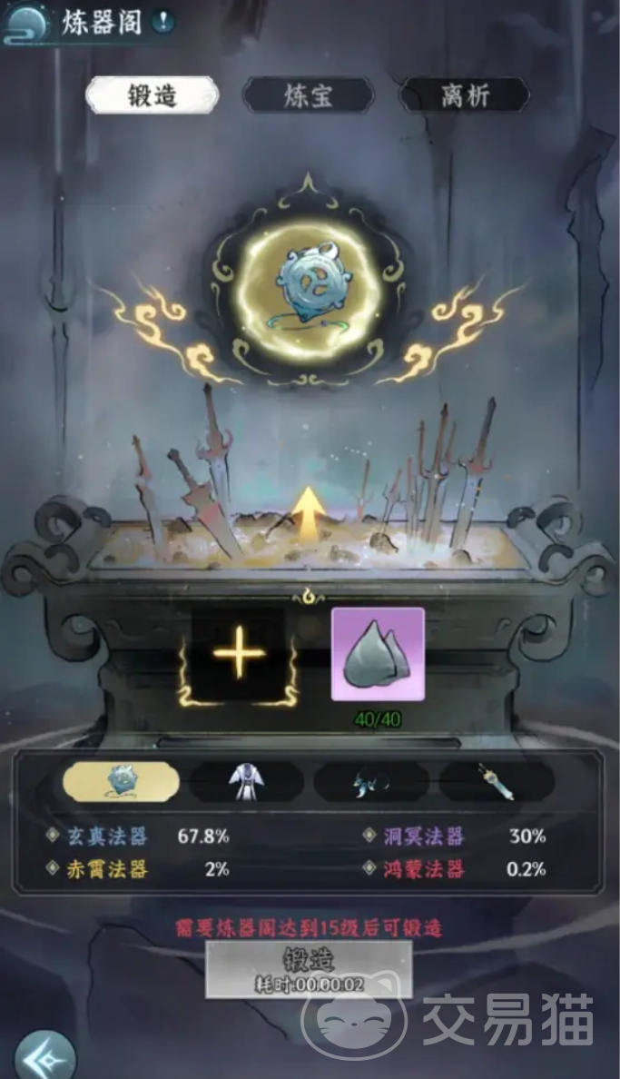 炼器阁的锻造功能于建筑等级达到15级时正式解锁。开启后,玩家可消耗鬼将领颅骨等指定材料进行武器锻造,单次操作耗时仅需2秒,完成后将随机产出不同品质的法器。该机制强调效率与资源规划,而非长时间等待,适合高频次、有节奏地提升装备水平。