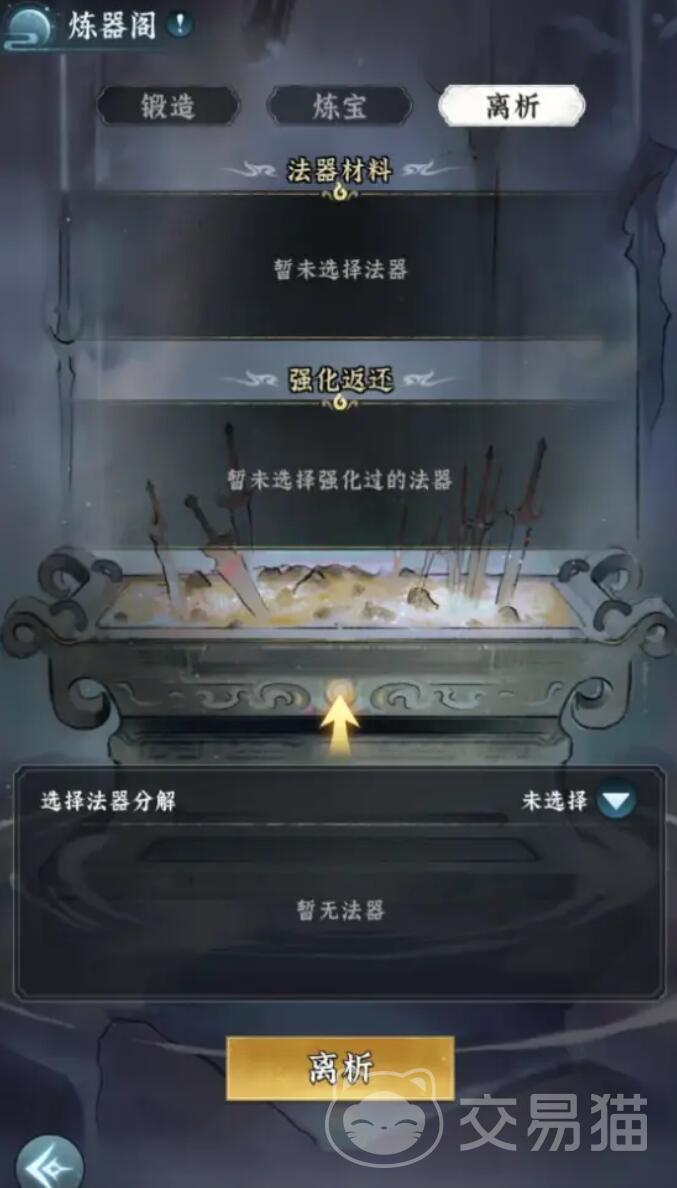 炼器阁另一项实用功能为法器分解。玩家可将闲置或低阶法器在此处进行拆解,按比例返还部分强化类材料。此举有助于优化背包空间,同时实现资源再利用,是中后期材料管理的重要环节。