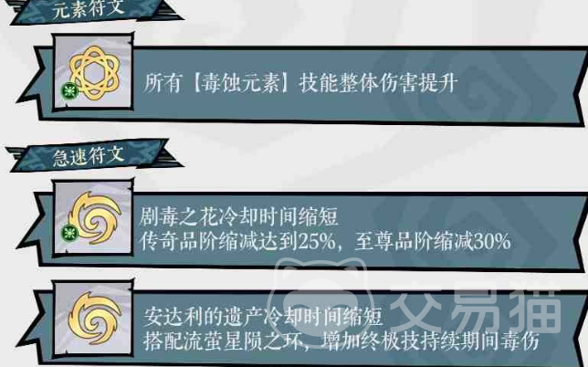 技能与符文配置是整套BD的关键所在。符文选择上推荐卡兹与菲奥娜这类具有毒元素增益效果的角色。元素类符文必须点满伤害加成,急速类符文也应优先拉满。配合“毒云蔓延”强化符文以及“剧毒散射”特效符文,整体输出能力可实现翻倍增长。技能组合方面,主推“剧毒之花”作为核心威能技,辅以“毒云蔓延”和“剧毒散”,能够迅速扩大影响范围,实现大范围群体叠加中毒效果,后续触发多层伤害更加稳定高效。