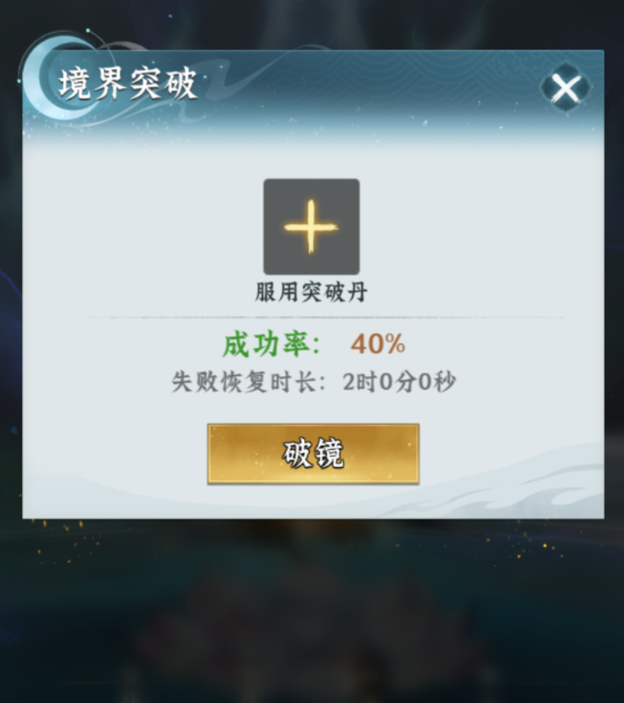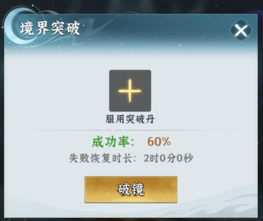 若尚未掌握炼丹技术或暂无相关资源,玩家仍可选择无丹突破路线。该模式下,每次渡劫失败将为后续尝试提供经验积累:下一次渡劫的基础成功率自动提升20%。例如,初始成功率为40%(如合体期未使用任何外力辅助时),首次失败后,第二次尝试即升至60%,形成渐进式成长机制。