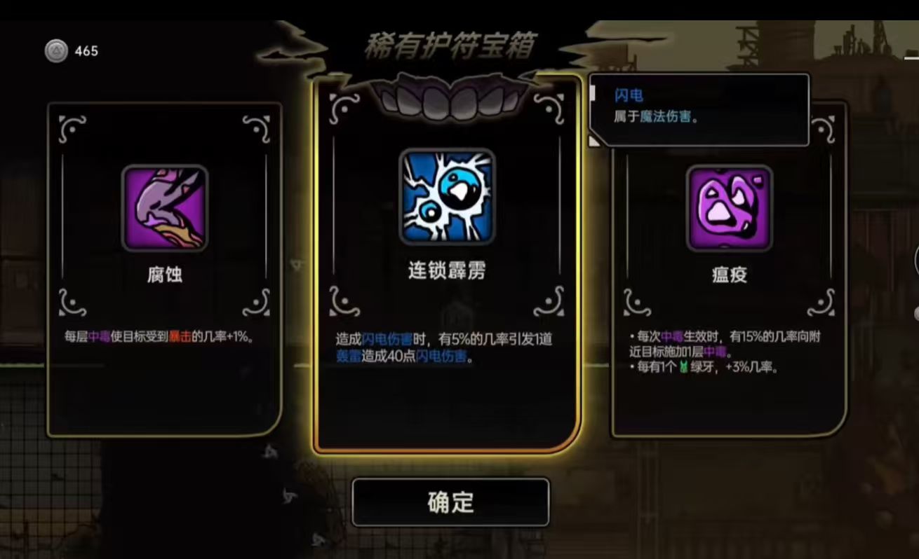 稀有护符宝箱是构筑起点的战略性选择,通常可开出紫色或金色品质护符,直接决定整局流派可行性。位面1-2阶段强烈推荐优先开启该房间:飞羽流若获得“强击羽”,爆炸流若抽到“回旋镖”,即可快速建立输出循环,大幅提升战斗节奏。当宝箱掉落非目标护符时,单机模式下可强制退出并重新加载,有效规避因随机性导致的早期构筑失败。待中后期流派框架稳固后,该房间优先级应适当下调,将资源转向属性升级或商店补给,以保障持久作战能力。