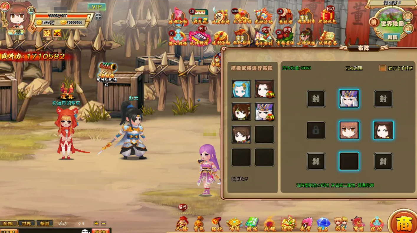角色养成是驱动战力提升的核心路径。每位武将均配备专属武器系统,支持强化、精炼、宝石镶嵌三重进阶机制;装备还可通过合成、重铸等方式持续优化属性。除常规升级外,角色具备“进化”与“觉醒”双轨成长线——进化可突破等级上限并解锁新技能槽位,觉醒则激活专属武功招式,显著改变战斗表现与技能组合逻辑。此外,阵法系统为策略维度注入深度:九宫格布阵支持前中后三排站位调整,不同阵型(如锋矢阵、鱼鳞阵)对攻防、暴击、闪避等属性产生差异化加成,需根据敌方阵容动态调配。