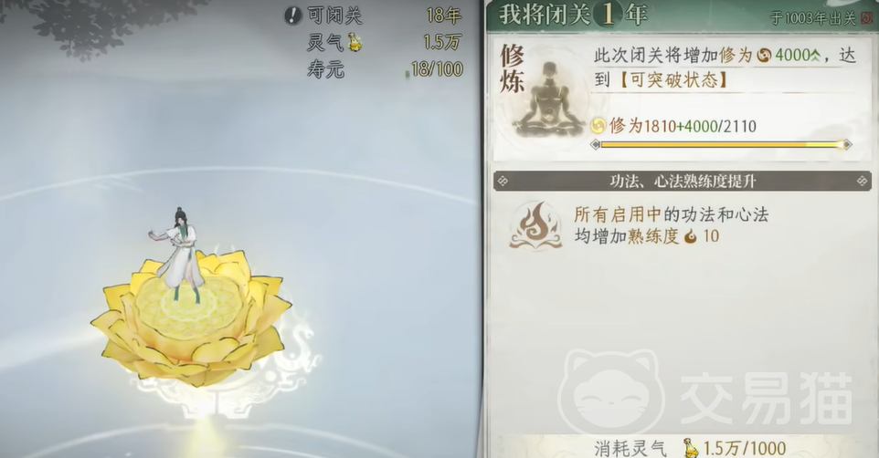 闭关机制具备年龄限制设定,角色实际寿元会影响可执行的修炼行为。玩家可通过消耗寿元丹突破此限制,实现持续进化。灵潭感悟功能可一次性获得4000点灵气,越早开启灵潭,越有利于前期资源储备与境界跃迁节奏把控。此外,游戏中多类交互节点均支持灵气事件随机刷新,高频积累灵气不仅夯实练气期根基,更同步强化神识值与寿元数值的成长稳定性。