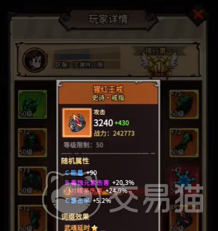 防具选择上,“猎杀之冠”是优选之一,可有效提升攻击属性,使每次攻击具备更强穿透力;“远征长靴”则提供移动速度与续航能力加成,增强机动性与持久作战表现。饰品搭配建议优先考虑“猩红护臂”,可带来稳定的输出增益,使连招伤害分布更为均匀。至于毕业级装备,“猩红王戒”作为史诗级戒指,可在角色达到50级后解锁,具备多项实用属性:包含20.3%的毒蚀元素伤害加成以及24.9%对精英单位的额外伤害,适用于多种输出流派,综合性能出色。