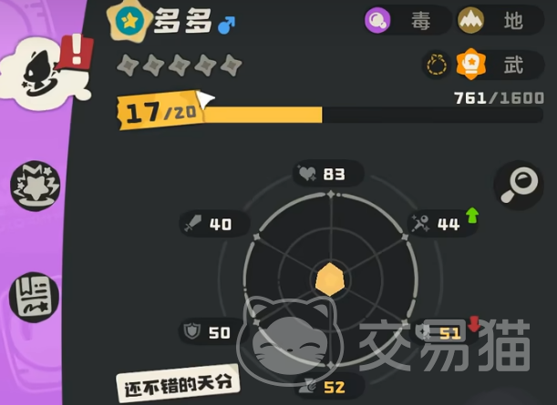 然而进入游戏后期阶段,受限于较低的种族值,多多的竞争力逐渐减弱。因此建议玩家将其作为过渡型精灵使用,在前中期发挥其实用价值。待后期可根据阵容需求决定是否继续培养。总体来看,多多是一位个性鲜明、机制有趣的精灵,尤其适合偏好毒系战术的训练师,值得在初期队伍中占有一席之地。