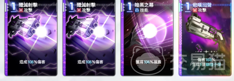 作为虚空猎人职业下的高阶输出单位,黑玫瑰诗人自初始阶段即展现出显著的战力优势。她配备四张起始卡牌,全部围绕“子弹”机制构建:其中两张基础伤害倍率为100%,一张可提升自身护盾上限达100%,最后一张则能生成一张伤害倍率100%的额外卡牌,并在触发时对目标造成140%的即时伤害。该组合在数值设计上突出爆发性与资源联动性,奠定了其在早期关卡与中后期PVE/PVP场景中的稳定输出地位。