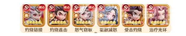 本队以燃烧机制为核心驱动逻辑。周瑜作为起火引擎,普攻与技能均有概率附加燃烧,其专属特性进一步提升全队灼烧伤害,并赋予灼烧状态回复效果,实现伤害与续航双重增益;孙权受击时自动触发燃烧,与周瑜形成双向叠火闭环;小乔承担战术干扰角色,驱散敌方增益、削减怒气,并提供光环增益;孙尚香与大乔协同提供持续怒气补充,强化孙策技能释放频率;孙策为实际主C,技能可攻击全体敌人,且每有1名敌方处于灼烧状态,其技能重释概率+5%,满叠6层灼烧时最高达60%重释率,理想状态下单回合可触发两次群体打击,清场效率突出。