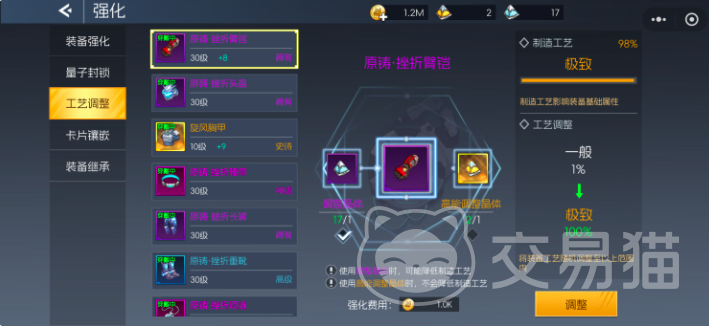 第三类为工艺调整环节:此模块影响装备基础制造品质,初始工艺成功率在1%至100%区间内随机浮动;引入卡片晶核后可稳定提升工艺优良率,从而更高效地产出高资质原始装备,为后期深度养成奠定硬件基础。