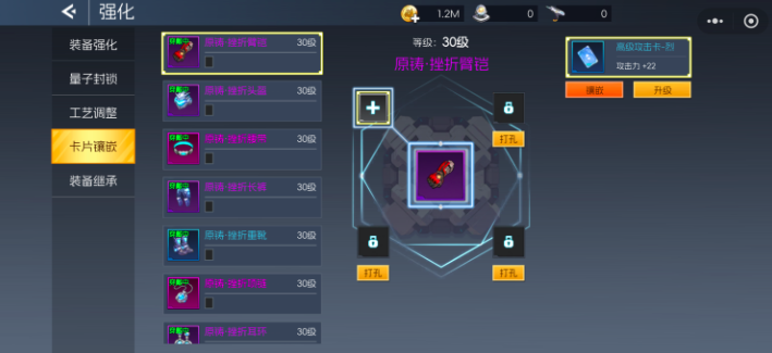 第四类为卡片镶嵌体系:这是卡片晶核最频繁使用的场景。玩家可在有限卡槽中嵌入具备特定属性的卡片,并借助晶核推动卡片本体养成数值跃迁;需注意:扩展卡槽数量需使用钻孔机;更换已有卡片则须解锁超声取卡器,因此首次镶嵌务必审慎评估属性适配性。