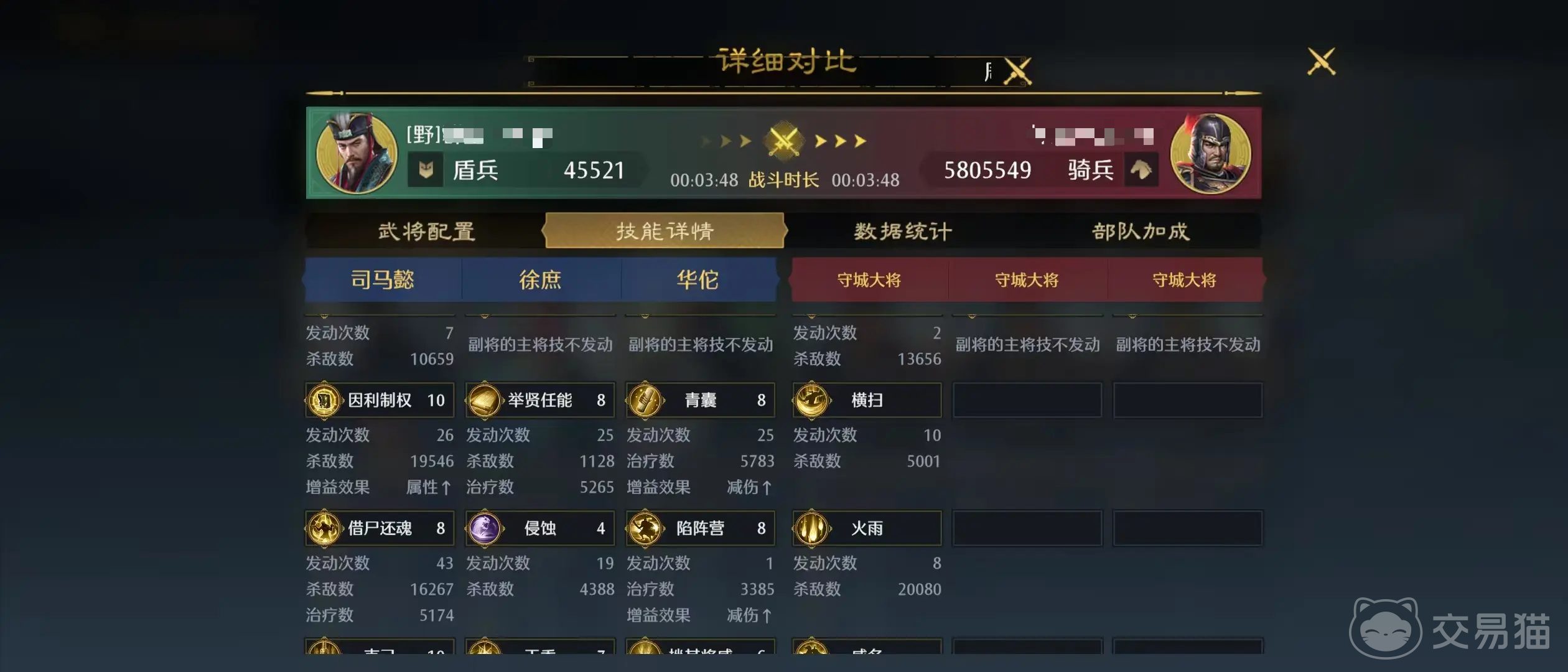 华佗担任队伍的治疗与解控核心,其高额群体治疗量可覆盖全队血线波动,确保持续作战能力;更重要的是,其战法具备驱散控制效果及负面状态清除能力,能及时解除眩晕、沉默、禁疗等关键限制,维持司马懿与徐庶的技能释放频率,保障毒伤循环不断档。
