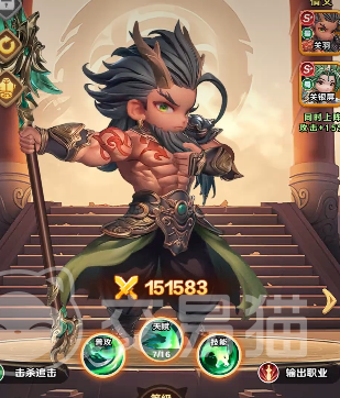 其二为“魔神关羽—魔神张飞—神话刘备”三人链接。相较双人链接,该组合覆盖范围更广,三名角色均可独立享受定向强化:关羽的群体伤害范围扩大、技能冷却缩减、震慑效果触发概率提升;张飞的生命恢复效率、物理减伤比例及嘲讽稳定性全面增强;刘备则获得更长持续时间、更高层数上限与更强效果覆盖率的全体增益型BUFF,显著提升全队生存与续航能力。