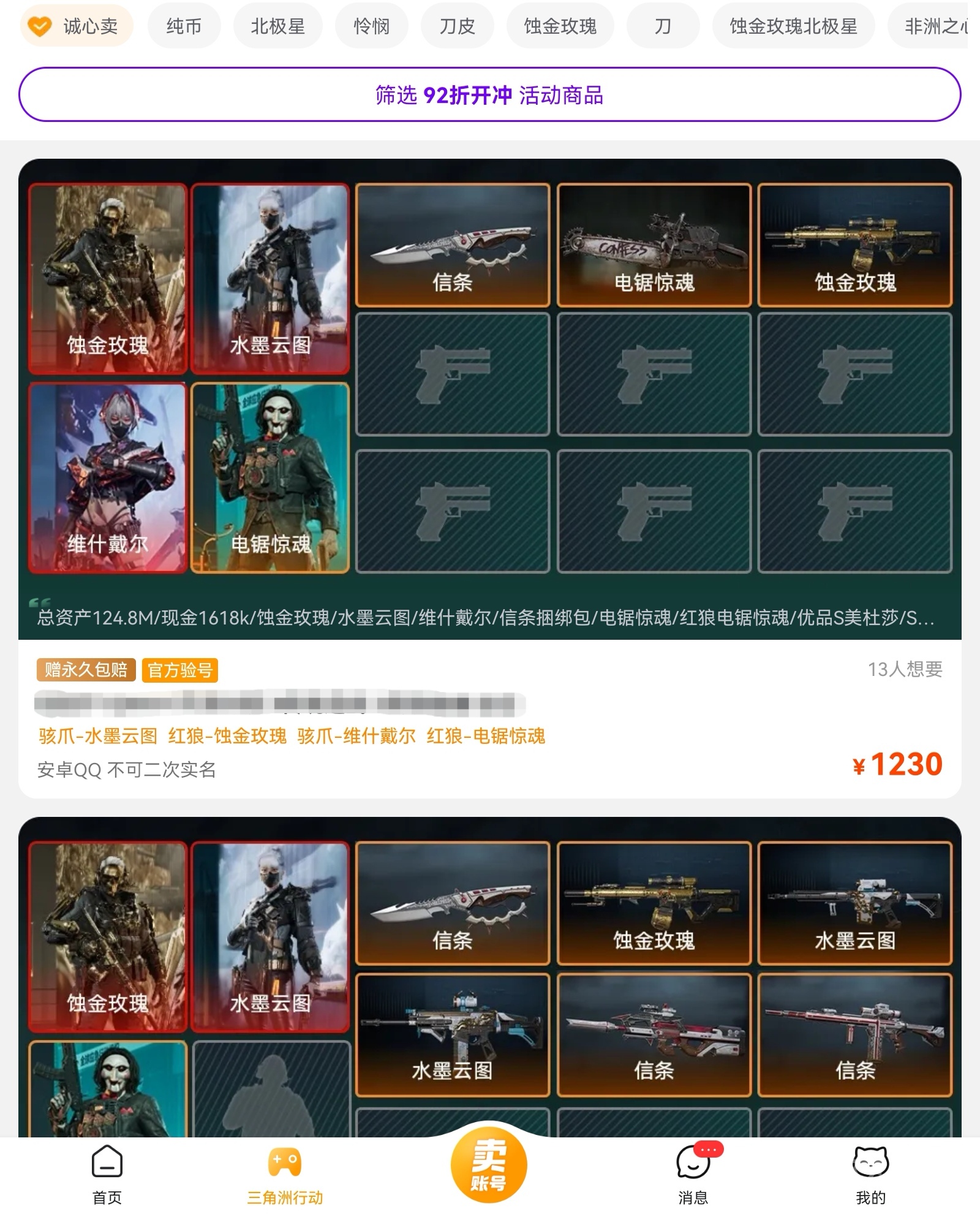 更重要的是,平台经常推出各类优惠活动,玩家可以享受极低的折扣,经过打折之后,账号的入手成本会进一步降低。交易猫还有一个好处,那就是商品信息全部透明公开,全部是卖家提供的真实内容,让你买得明白且放心,而且每个账号附带了一个详情页,里面从角色等级、装备详情、皮肤库存到资源数量,都有详细的文字描述和截图佐证。你可以从这里全方位了解账号的每一个细节,轻松对比不同账号的优劣。