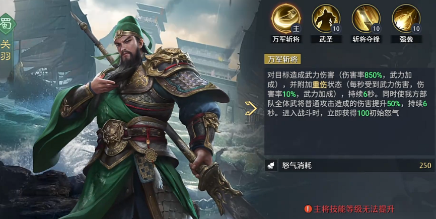 主将轮换需结合战局节奏动态调整:开荒阶段优先启用关羽,依托其高单点输出保障资源点快速占领;中期进入PVP与跨服对抗频发阶段,马超的AOE压制能力可有效压缩对手站位空间,加快战斗节奏;当遭遇高防御壁垒型对手(如徐晃类武将)时,及时切换张飞为主将,利用其无视防御特性打破僵局,形成战术突破口。