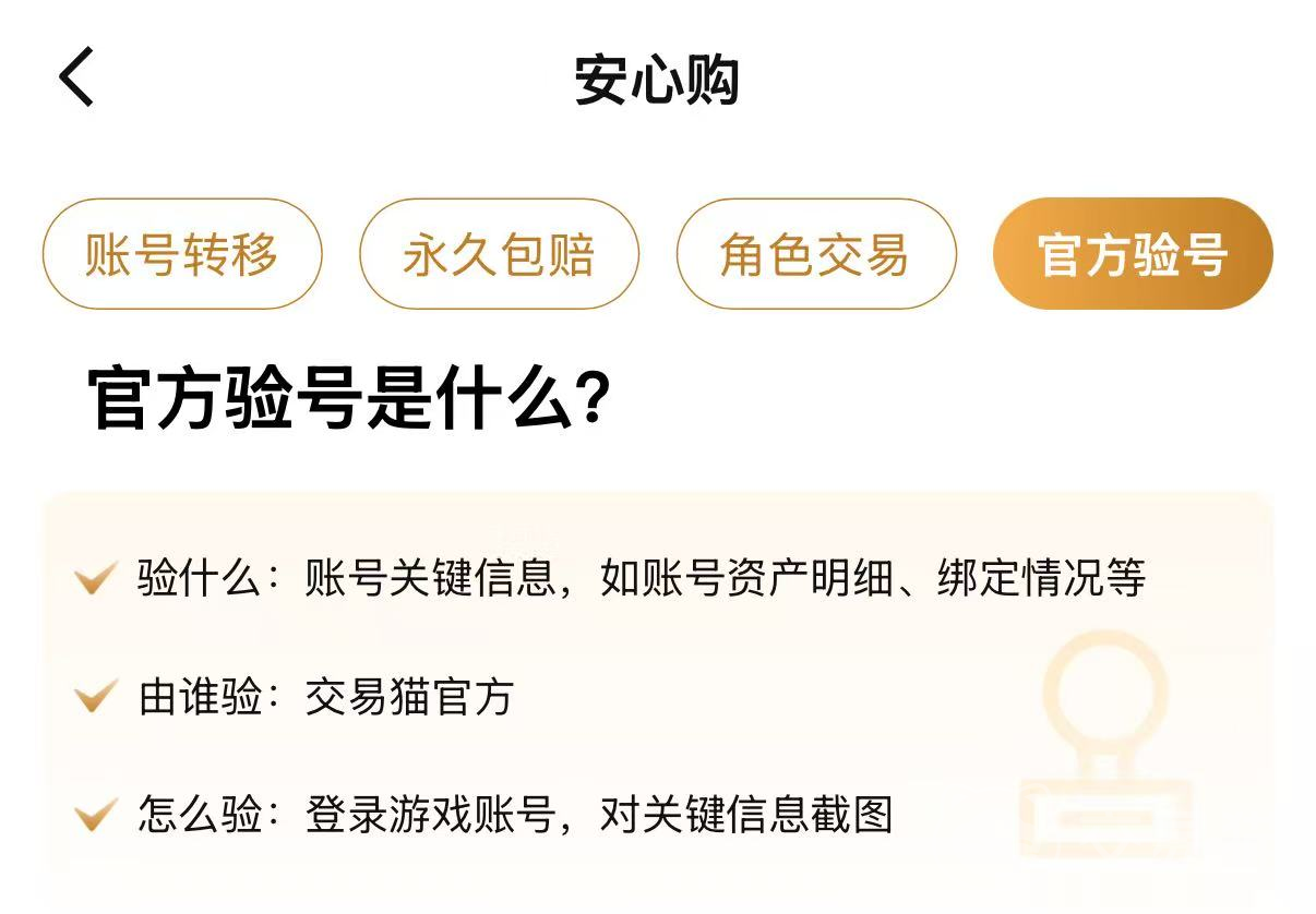 首先交易猫靠谱在它能保证出售的账号都是真实的,并非挂羊头卖狗肉的假号。它支持官方验号,派出专业团队对账号进行细致查验,并配以验号截图作为佐证。买家挑选账号的时候只要认准官方验号就不怕被坑了。