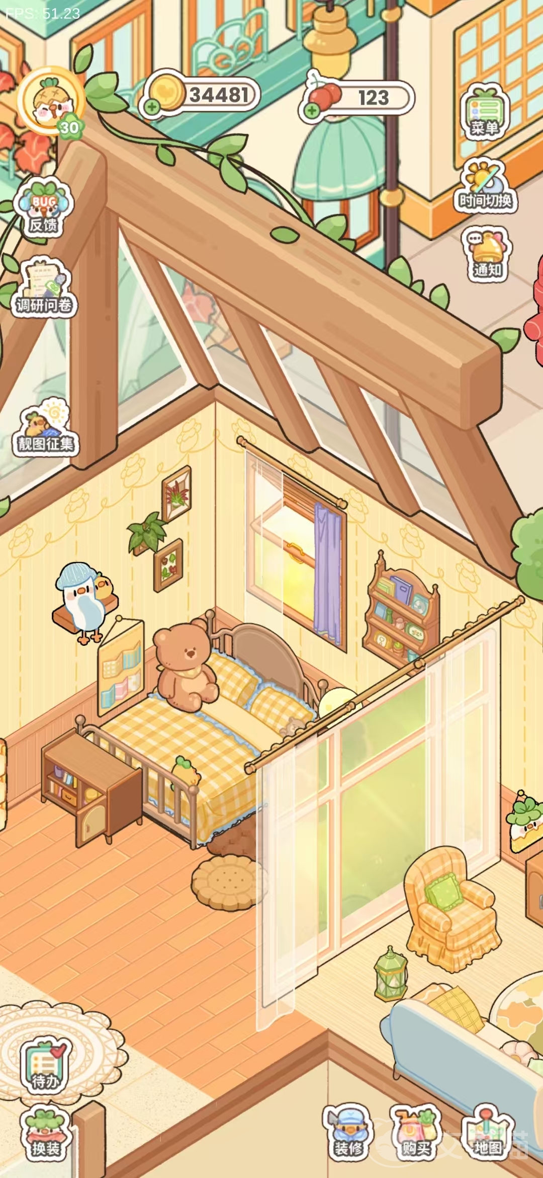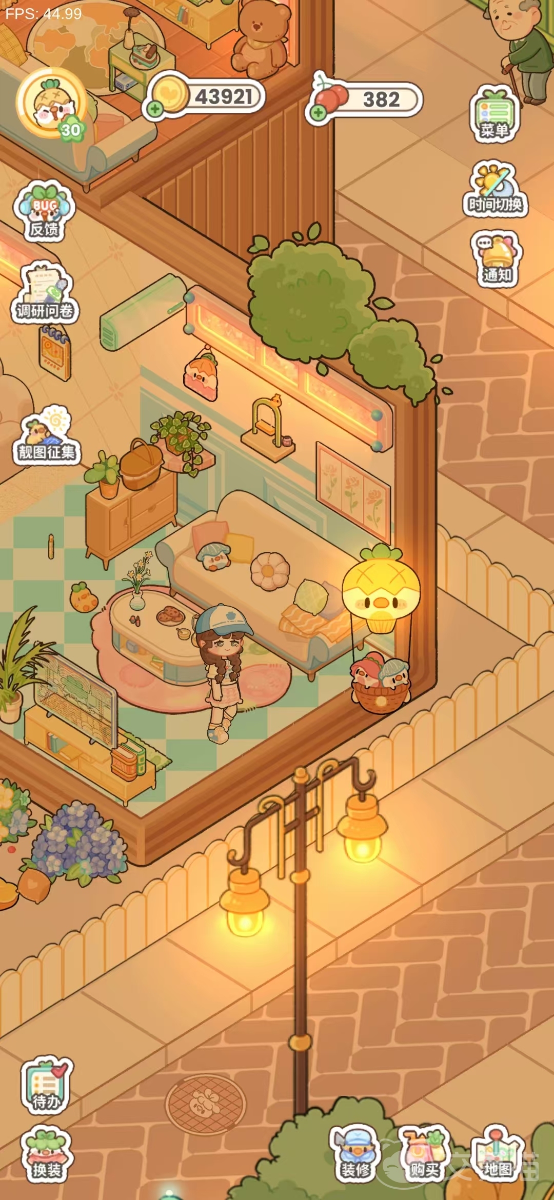 作为一款中度模拟类作品,《菜鸡梦想家》以房屋装修与空间营造为核心玩法之一。区别于传统格子制布局,本作采用无网格四向翻转系统:家具可自由摆放在室内任意角度,亦能直接延展至户外空地;更支持移除墙体结构,在地基层面上进行开放式布景,极大拓展了创意表达边界。