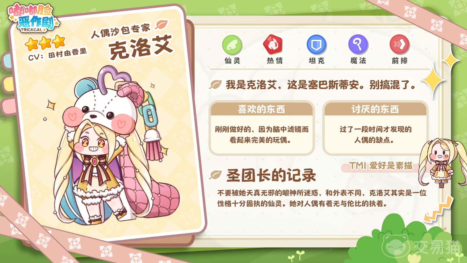游戏采用五行属性映射性格设定:木(纯粹)、水(冷静)、火(狂热)、光(活泼)、暗(忧郁)。所有角色按稀有度划分为三星、两星与一星,其中仅三星角色具备完整技能链、成长路径及实战适配性,是构筑主力阵容的基础。两星及以下角色暂不纳入本篇分析范围。