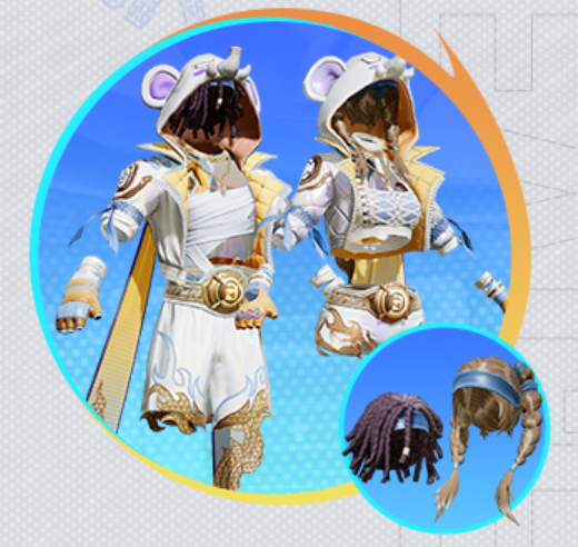 装备组件严格遵循格斗功能性逻辑:低帮泰拳训练鞋搭配加厚袜套,提升足底抓地稳定性与踝关节支撑性;男款采用战术绷带式内搭,强化上肢发力视觉引导;女款则通过高弹抹胸与超短功能裤组合,在限定下装长度前提下最大化髋部活动自由度;披风结构模拟泰拳起势时的气流扰动形态,兜帽边缘嵌入仿象牙纹路,脏辫末端缀有微型拳套造型挂饰,多维度呼应主题语义。
