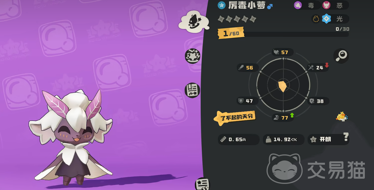 关于性格搭配,推荐优先考虑开朗(+速度/-魔攻)或固执(+攻击/-魔攻)。因厉毒修萝以物理攻击为主要输出路径,魔攻属性下调对其实战影响有限;而速度提升可保障先手权,攻击强化则直接提升爆发能力,二者均契合其战斗定位。