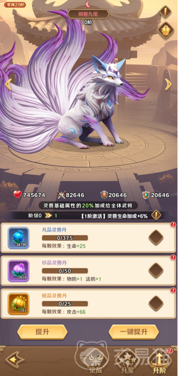 祸魅九尾:属于功能性控制型灵兽,侧重于PVP环境下的节奏压制。其技能可在每回合开始时削减敌方全体武将怒气值,并具备打断效果,有效限制敌方核心输出或辅助武将的技能释放时机。该灵兽于开服第12天随灵兽系统同步开放,通过常规抽取即可获取,无需额外活动门槛,是前期布防竞技场的可靠选择。