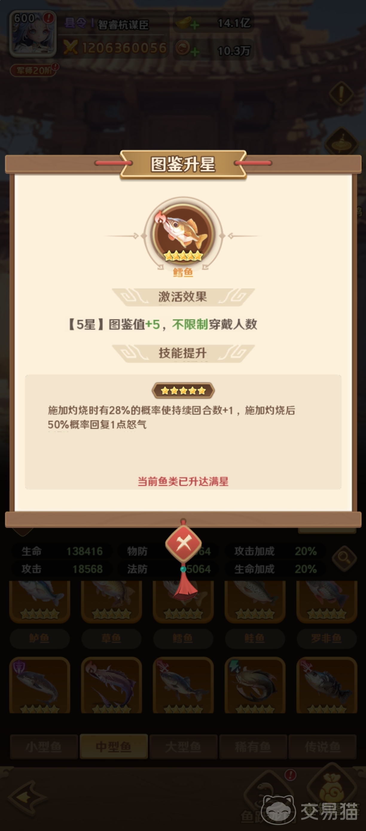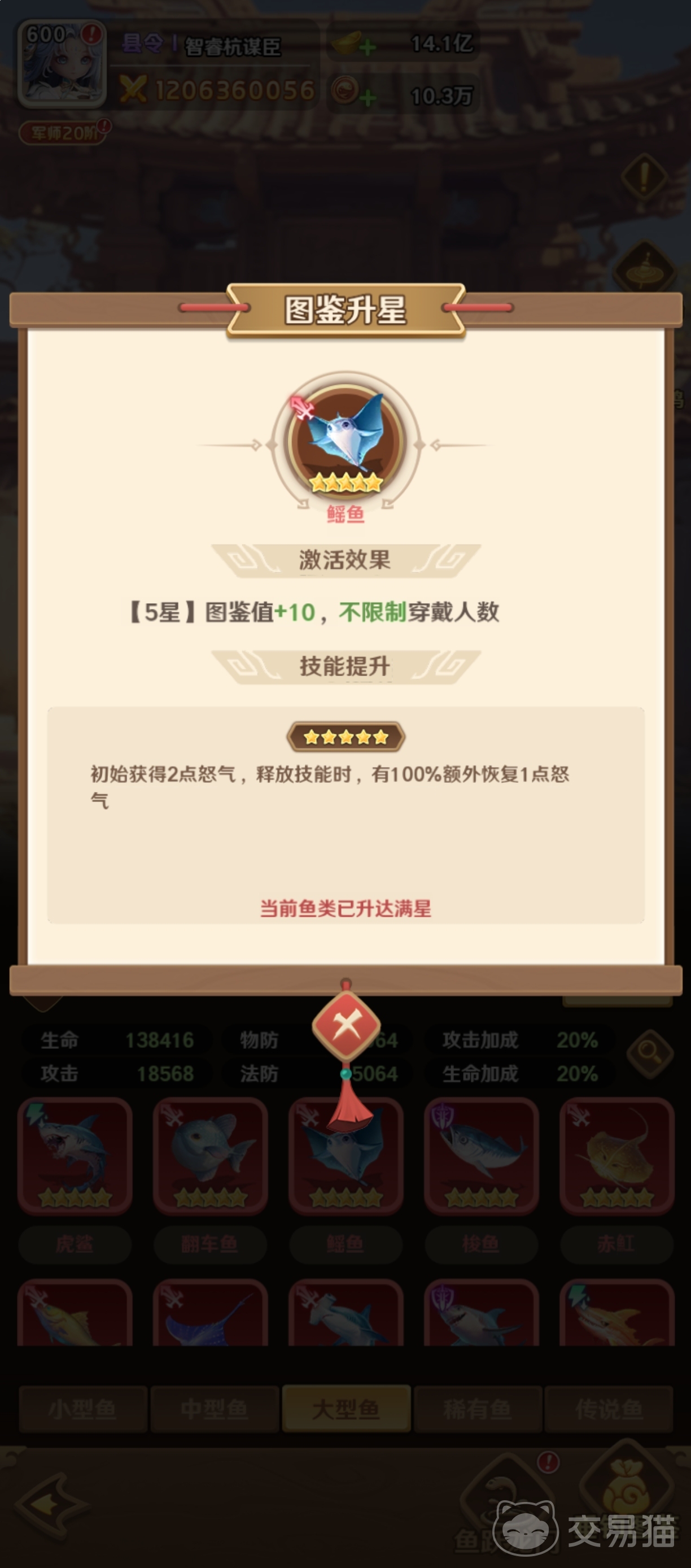 次选鳐鱼:专注解决周瑜怒气供给瓶颈。其被动效果可在每回合稳定回复固定点数怒气,保障周瑜技能释放频率,避免因怒气不足导致灼烧层数断档或控制链中断。该鱼类适配性强,不仅适用于周瑜单核阵容,亦可融入多灼烧协同体系,是构建高频控场流派的关键支撑。