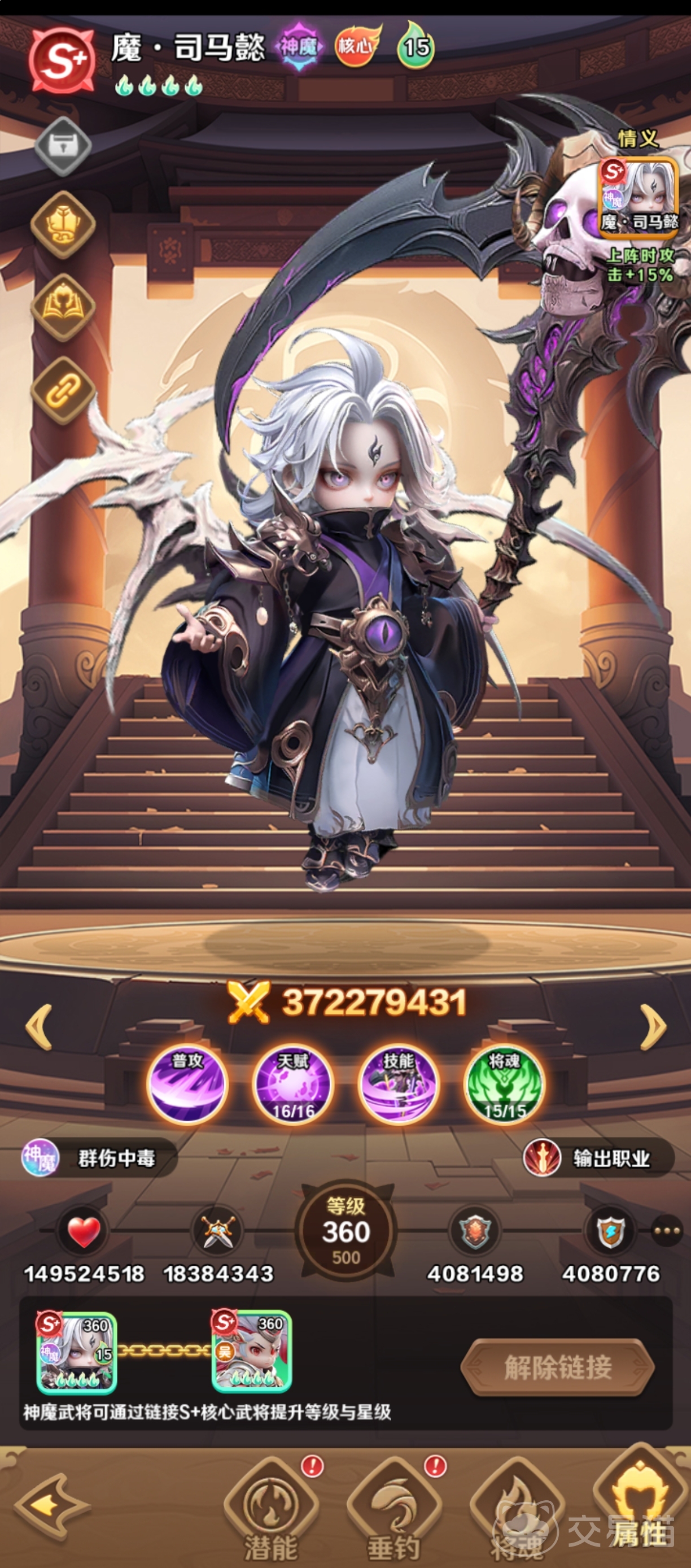 魔司马懿是中毒流派的核心驱动者。其技能可对敌方全体施加法术伤害,并在普攻或受击时以概率附加中毒效果。值得注意的是,若该武将在释放技能时已处于中毒状态,则不再消耗怒气;反之,若消耗怒气,则中毒触发概率直接提升至100%。这一机制使其在持久战与多段伤害场景中具备极强的压制力与资源循环优势。