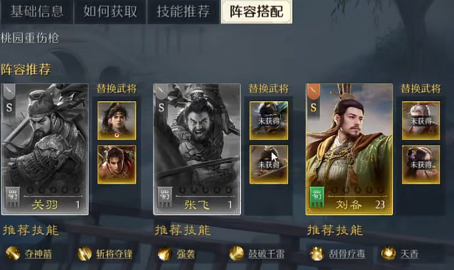 以桃园队为例,其技能配置逻辑围绕“站得久、反得稳”展开:关羽建议搭配霸王反戈与八师破金,强化反击触发与伤害转化;刘备必带坚阵合一,该技能不仅提供高额减伤,还能为全体队友附加护盾,是团队生存中枢;张飞则适配新州军与列阵御敌,进一步提升反击频率与承伤能力。前期切忌追求爆发秒杀,稳定压低战损才是推进主线与资源采集的核心指标。