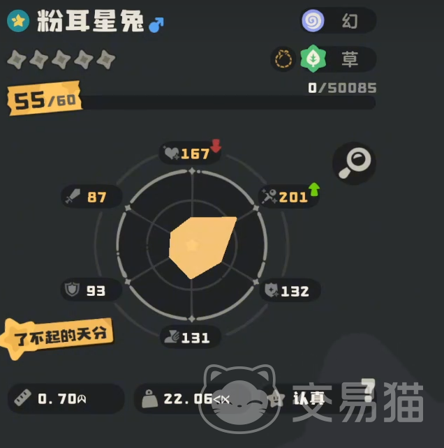 粉耳星兔为纯幻属性精灵,在属性克制链中存在一定局限性,需注意阵容搭配策略。其总种族值达601点,稳居当前高阶精灵梯队前列——目前多数同阶段主力精灵总种族值尚未突破600,这一数值优势直接转化为生存韧性、输出潜力与技能释放效率的全面提升。