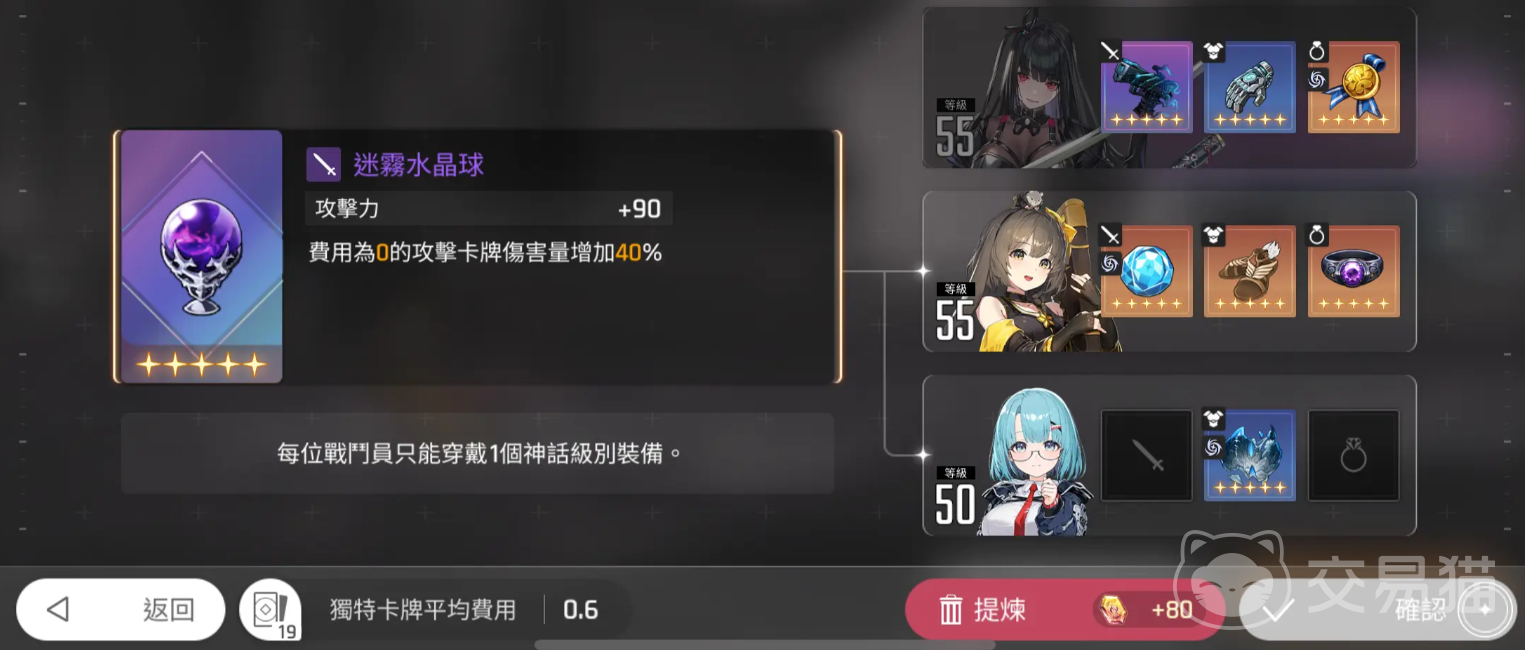 装备配置需严格匹配循环逻辑:“水晶球”是当前0费卡组中综合强度最高的武器选择,但需预留转手位——若前期已锁定紫色装备,则无法中途更换。防具推荐“自由之翼”,其提供的增伤效果与琳的快节奏输出特性高度协同。另需注意:2命“入鞘”丢出后同样为0费,进一步巩固了无费用负担的作战模式。