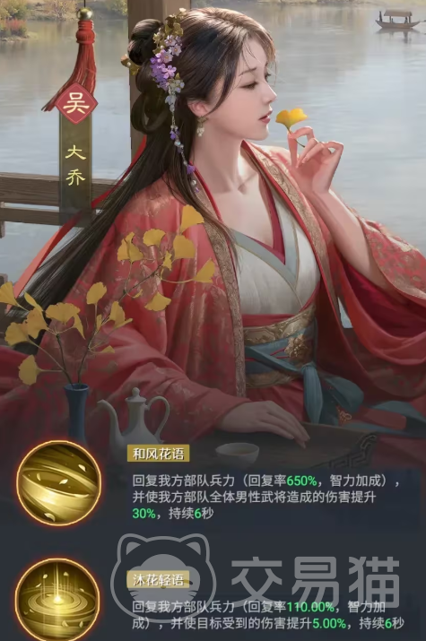 首位推荐的是吴国名将大乔。作为泛用性极强的女性辅助,她兼具群体治疗与定向增伤双重职能。当其担任主将时,可为全体友军恢复高达650%兵力的数值,有效缓解前中期战损压力。更关键的是,其技能对当前上阵的所有男性武将额外提供30%的伤害加成,持续6秒;同时自身还附带5%的承伤减免效果,进一步提升团队容错率。配合吴国体系或以男性输出为核心的阵容,大乔能显著放大整体作战效能。