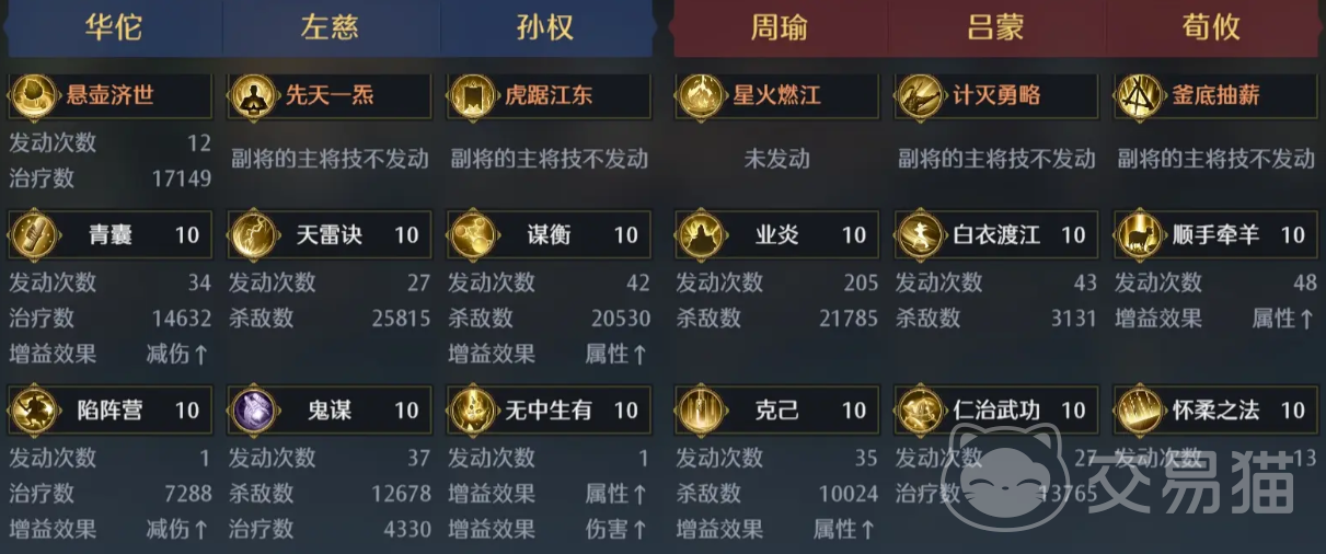 第一套推荐阵容为“长效续航型抗伤体系”,以孙权为主将,搭配华佗与左慈两位辅助型副将。该组合聚焦于战局持久力与生存稳定性:孙权自身提供高额减伤与无敌状态,华佗通过持续治疗与后期减伤强化保障队伍血线,左慈则以太平道法提供智力加成,并可激活“借尸还魂”实现关键回合的二次行动。三者协同下,孙权可获得总计150%的属性加成,显著提升其承伤阈值与技能释放频率。面对具备高抗伤能力的敌方阵容时,该配置仍能维持可观的输出转化效率。