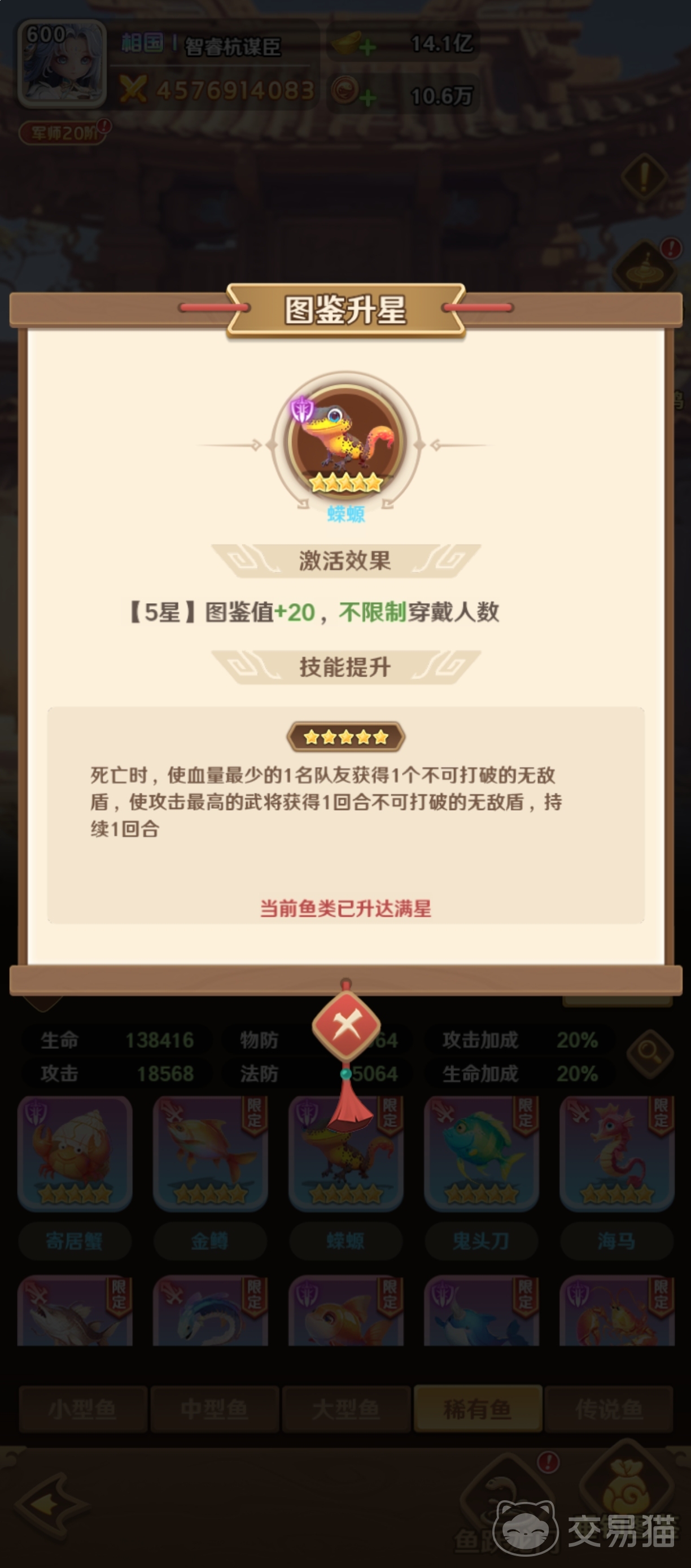 在《巨神军师》这款融合历史策略与角色养成的卡牌对战游戏中,貂蝉作为S级核心武将,其战场定位以群体魅惑、节奏干扰与战术牵制见长。而“鱼”系统作为游戏内独有的特色装备体系,不占用常规装备栏位,却能为武将提供不可替代的机制增益。合理搭配鱼类,可显著强化貂蝉的控制稳定性、持续作战韧性及团队协同价值。