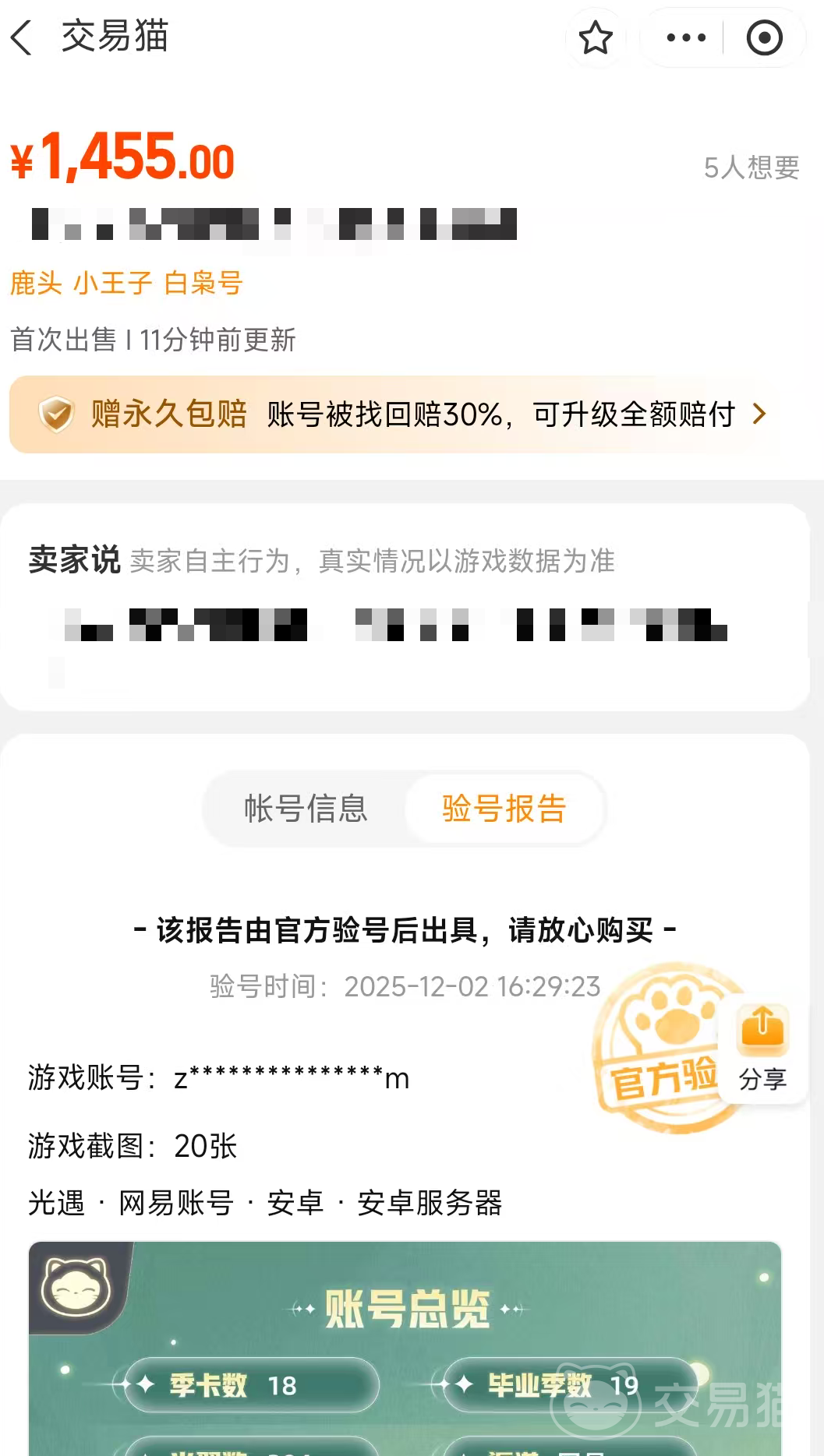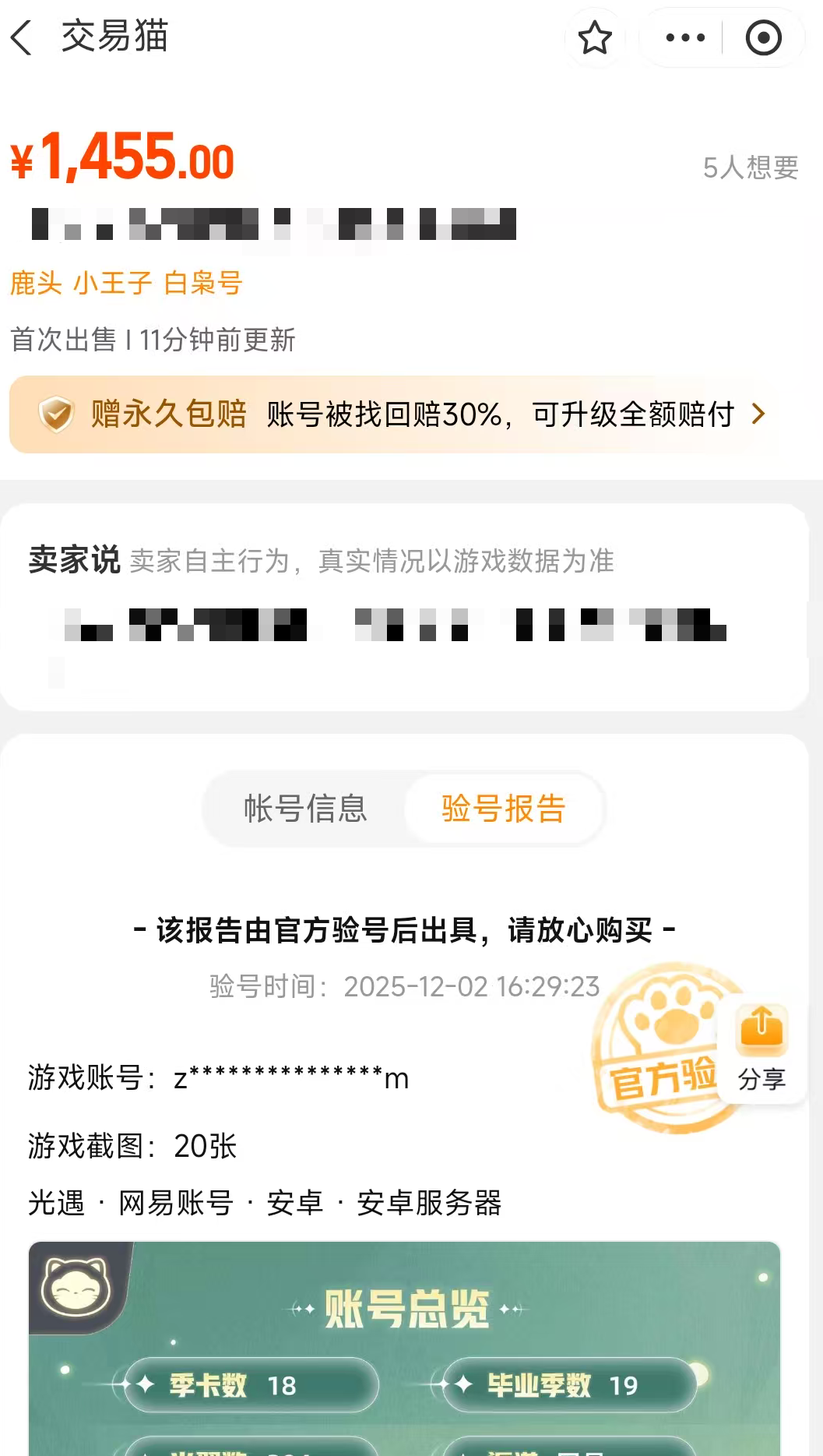 目前这就是交易猫是什么平台的全部信息了,交易猫平台的服务是很全面的,尤其是交易的过程中安全保障较多,基本上能帮助玩家们购买喜欢的账号,同时出售账号的功能也全面。