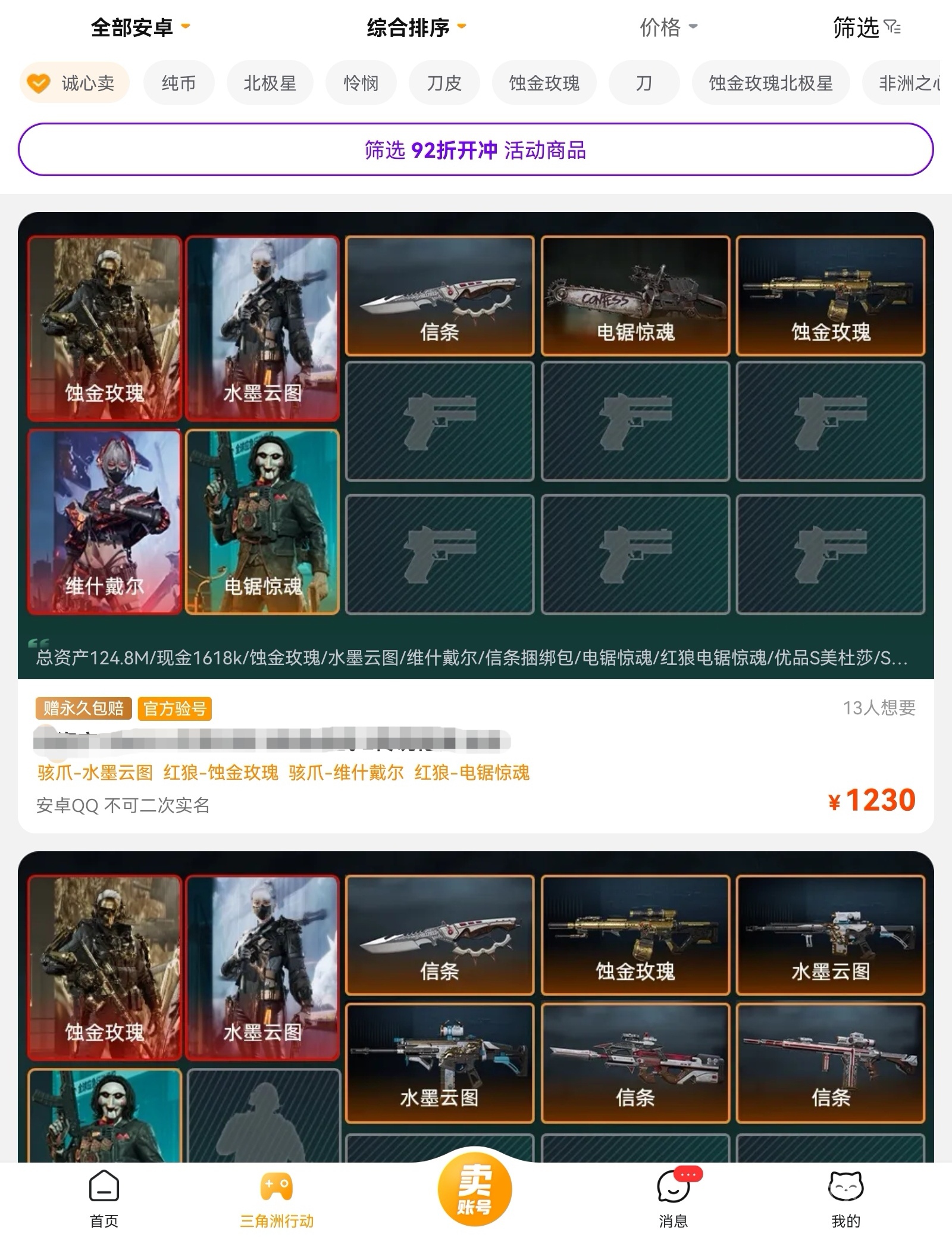 此外,在购号前,大家不妨估算一下自己动手练号的成本,然后以这个为参考,再到市场上寻找价格差不多,装备、皮肤等资源也满足你需求的账号,直接将其买入,就能为你节省很多时间,要是运气好的话,还有机会用低价买到退坑号,而且平台会不定时举行优惠大促活动,用户能以更低的折扣,买入自己的目标账号。