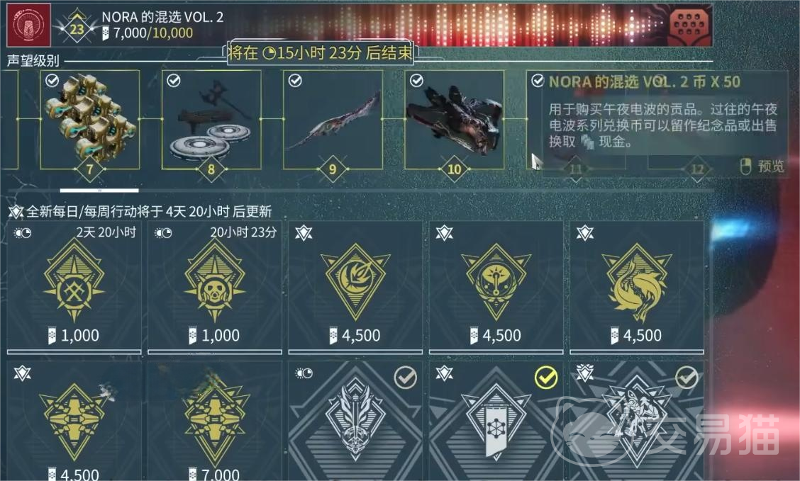 每日任务共1个,有效期为3天,单次完成可获得100点声望;周常任务于每周四刷新,包含5个普通任务(每项4500声望)和2个精英任务(每项14000声望)。所有周常任务均可通过重复挑战指定场景中的固定敌人来稳定完成,无需依赖随机掉落或高难度操作,适合持续投入时间的玩家稳步提升等级。