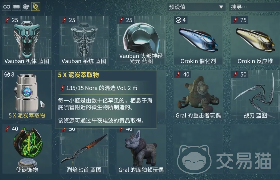 声望商店每周轮换一次商品列表。当前可兑换物品包括:泥炭萃取物(用于制作猴甲、蝴蝶甲等特殊护甲),仅限使用电波币购买;亡灵节主题外观为赛季限定款式,随版本更新迭代,每个赛季均推出全新不可复刻造型。此外,商店还提供多种核心制造资源——如机体蓝图、头部神经蓝图、催化剂、反应堆,以及战刃蓝图等关键组件。