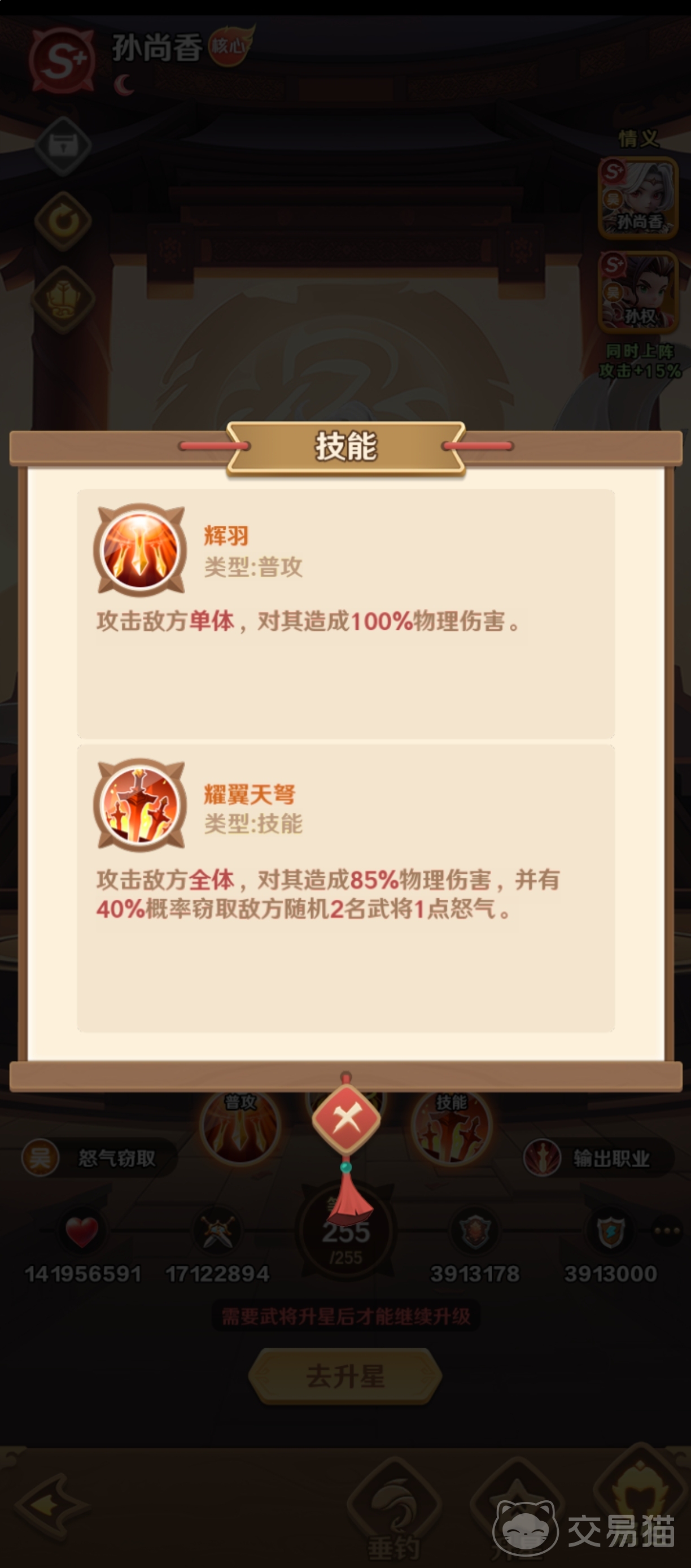 相较而言,孙尚香是吴国阵营中典型的爆发兼干扰型武将。其普攻可对敌方单体造成100%物理伤害,具备精准点杀高威胁目标的能力;释放主动技能后,则转为对敌方全体施加85%物理伤害,并额外附带延缓敌方技能释放的战术效果。该控制机制可有效打乱对手节奏,配合高倍率AOE输出,在PVP对战或需要快速终结战局的关卡中优势突出。其“怒气窃取”相关效果(文中未明确数值但语境指向干扰类机制)进一步强化了她在快节奏对抗中的战略价值。
